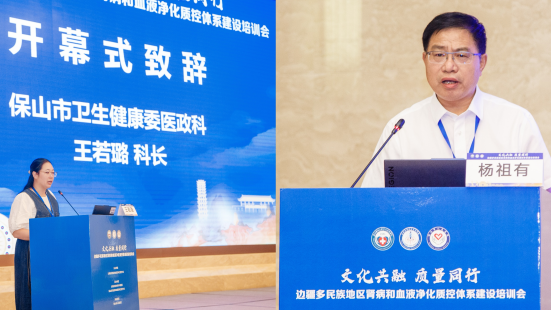 保山市卫生健康委医政科王若瑶科长、保山市人民医院杨祖有院长出席开幕式活动并致辞。表示此次活动对提升边疆地区肾脏病防治能力具有重要意义,希望借助专家资源缩小区域医疗差距,为边疆群众提供更优质的医疗服务。